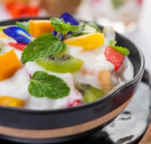 - Cara membuat: Potong-potong buah-buahan, campurkan dengan yogurt plain, dan taburi dengan granola.